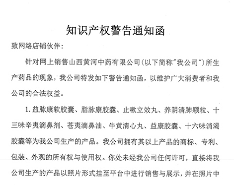• 山西黃河中藥有限公司《知識(shí)產(chǎn)權(quán)警告通